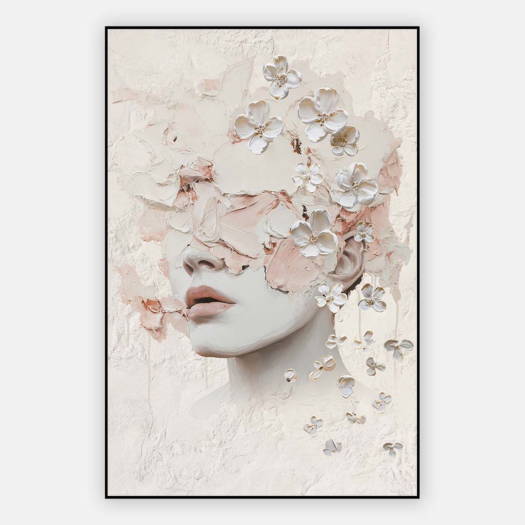 Het schilderij Silent blossom is onderdeel van onze collectie vrouw schilderij. Ontdek dit betoverende schilderij vrouw, een kunstwerk dat schoonheid, mysterie en modern design samenbrengt. Het delicate schilderij vrouw gezicht is uitgevoerd in een eigentijdse, abstracte stijl die perfect past in een modern interieur. Door de subtiele bloemen ontstaat er een harmonieus contrast tussen zachtheid en kracht, wat dit werk niet alleen een schilderij vrouw met bloemen, maar ook een echt statement piece maakt. Dit schilderij vrouw gezicht modern is ideaal voor liefhebbers van minimalistische en stijlvolle kunst. Voeg een vleugje elegantie en moderne kunst toe aan je interieur met dit bijzondere abstract schilderij vrouw in een luxe aluminium artframe met verwisselbaar doek.