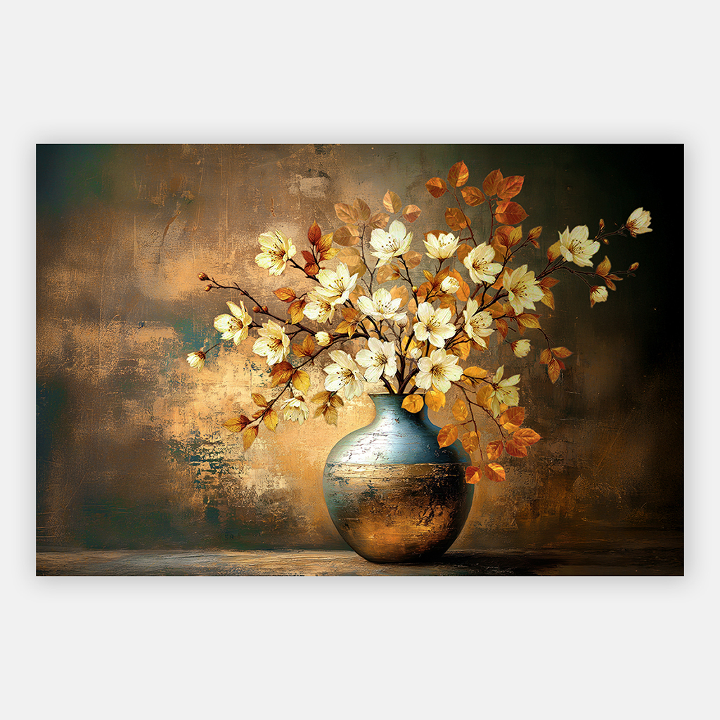 Het schilderij Autumn whispers is onderdeel van de collectie schilderij bloemen. Het bloemen schilderij met gouden accenten is een ode aan de natuurlijke schoonheid van bloeiende takken en warme herfstkleuren. De combinatie van de gouden tinten en zachte bloembladeren geeft dit bloemen schilderij een luxueuze uitstraling die rust en verfijning uitstraalt. Dit kunstwerk vormt een prachtige blikvanger in elk interieur – van woonkamer tot slaapkamer. De subtiele lichtreflecties en rijke texturen maken dit schilderij bloemen in vaas tot een modern stilleven met bloemen, waarin traditie en eigentijdse kunst elkaar ontmoeten. Perfect voor wie houdt van natuur, elegantie en een warme sfeer in huis. Of je nu kiest voor een glasschilderij bloemen met glanzende diepte, een matte afdruk op Aluminium Dibond, of een luxe uitstraling met wanddecoratie goud, Autumn Whispers brengt altijd een vleugje klasse aan je wand. Dankzij de hoogwaardige materialen en scherpe afdrukkwaliteit blijft dit kunstwerk jarenlang stralen – een tijdloze aanvulling op je interieur die elke ruimte transformeert tot een stijlvolle oase van rust en schoonheid.