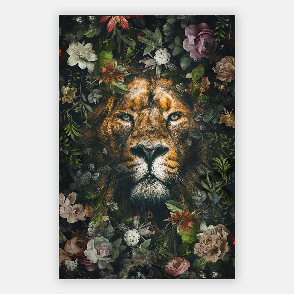 Het schilderij Leeuw met bloemen is onderdeel van de collectie schilderij dieren. Verrijk je interieur met de betoverende kracht van dit schilderij van een leeuw met bloemen — een kunstwerk waarin stoer dierenportret en zachte botanische elementen prachtig samenkomen. De intense blik van de leeuw, omringd door sierlijke bloemen en bladeren, maakt dit kunstwerk tot een echte eyecatcher in iedere ruimte. Als dieren schilderij past het perfect binnen moderne, botanische en luxe woonstijlen en is ideaal als schilderij leeuw. Of je dit kunstwerk nu gebruikt als krachtige blikvanger boven de bank, als sfeermaker in de slaapkamer, of als stijlvolle decoratie in een kantoor of entree — het Leeuw met bloemen schilderij brengt altijd karakter, rust en verfijning aan je interieur.